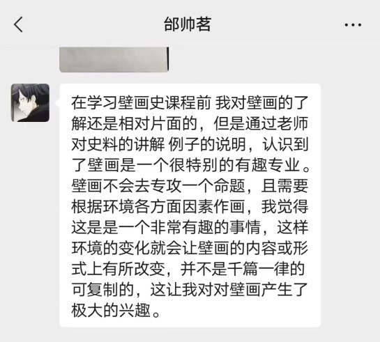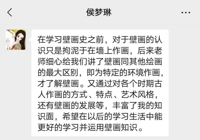 (1)、壁画史课程,积极使用线上资源,积极对接《中国美术史》、《西方美术西》线上优质课程,分享“走进毕加索”、“文艺复兴的秘密”等视频、积极利用“数字敦煌”网站VR敦煌莫高窟壁画漫游等资源,扩展壁画史的学习方式,丰富教学资源和教学手段,增加同学学习兴趣。