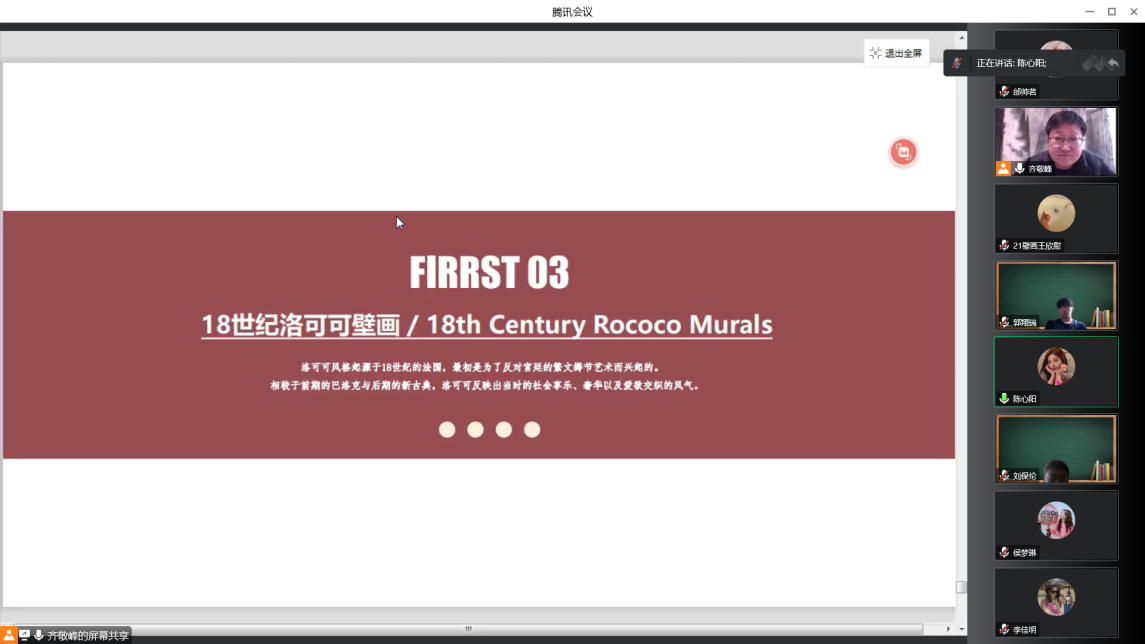 (2)、实时互动,让学生回答问题、介绍学习心得,分享艺术故事等内容;活跃线上课堂氛围,适当保持课堂节奏。