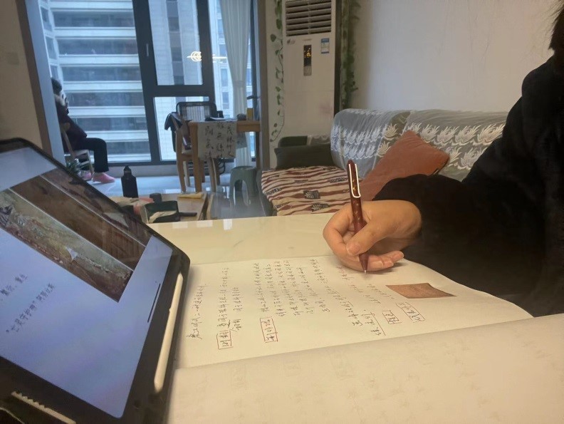 针对在线理论学习特点,我特别强调师生的互动:一是加强课前相关知识的预习,目的使让同学们了解相关知识,逐渐收心,进入学习状态;二是在线理论课堂上的讲学互动,线上教学师生对着电脑,容易走神,我就特意的增加提问和讨论环节,增加课堂互动性。在第三周课程中,课下的方案构思设计,我要求随时汇报草图进度,检查作业完成情况,随时构图讲解。再有就是让同学们做总结写建议意见,根据同学们所需,共同打造线上课堂。