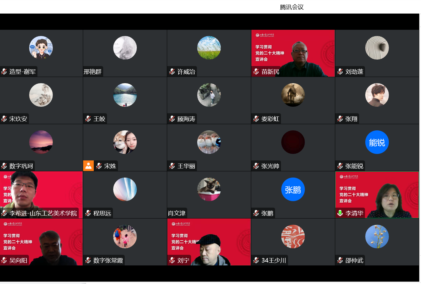 为切实做好党的二十大精神学习宣传贯彻工作,落实学校《中共山东工艺美术委员会关于深入学习宣传贯彻党的二十大精神实施方案》工作安排,推动党的二十大精神落地落实,形成学思践悟、实干笃行的良好氛围,1月9日上午,学校党委委员、纪委书记、监察专员苗新民为造型艺术学院全体教师作党的二十大精神主题宣讲,造型艺术学院党政领导班子成员、全体教职工以线上形式参加会议。
