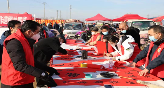 (图为实践团队成员写春联)