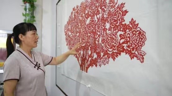 (图为实践团队参观剪纸传承人常风灵剪纸工作室并学习剪纸技艺)