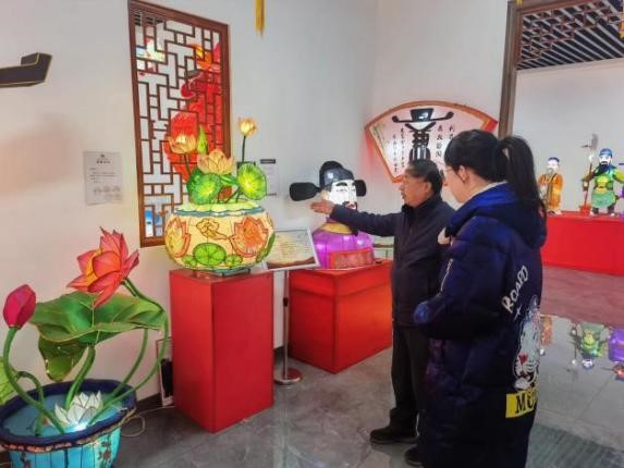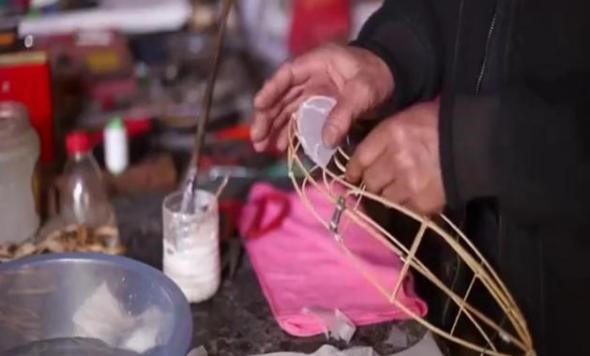 (图为传承人陈柏华为实践团队讲解秦淮灯彩制作技艺)
