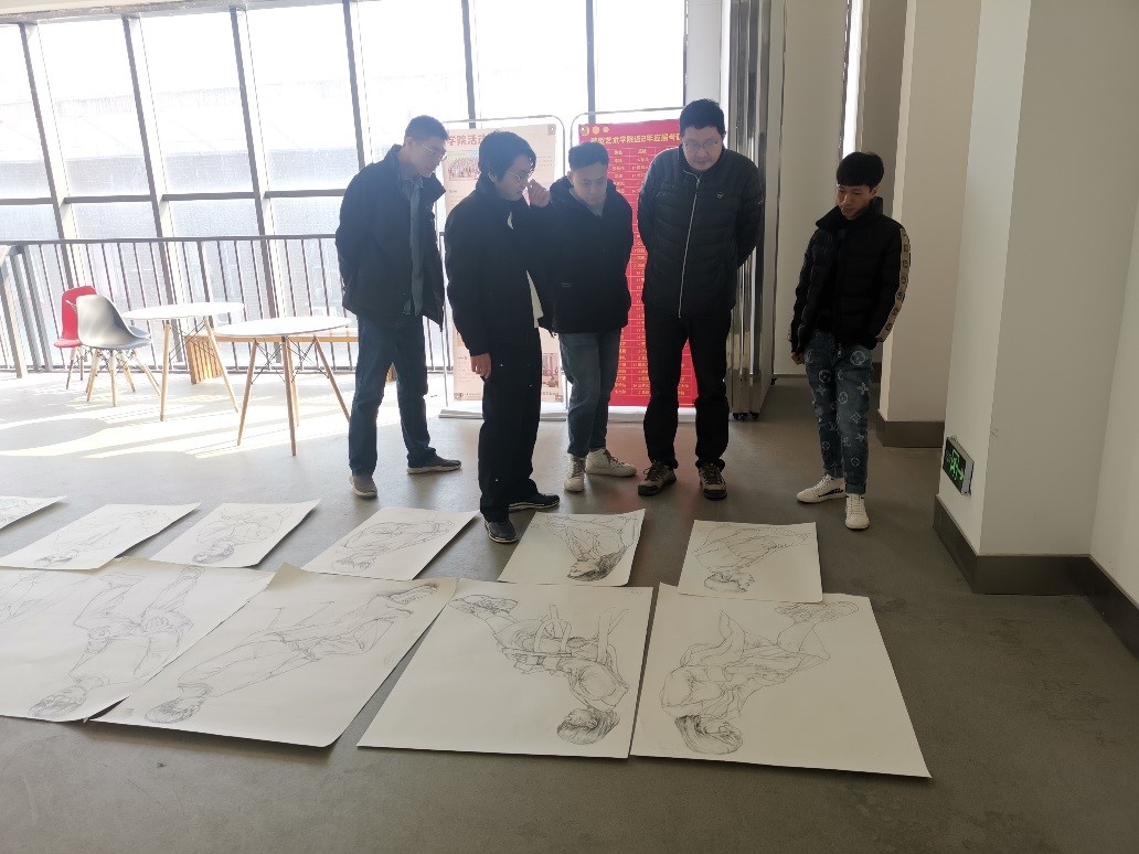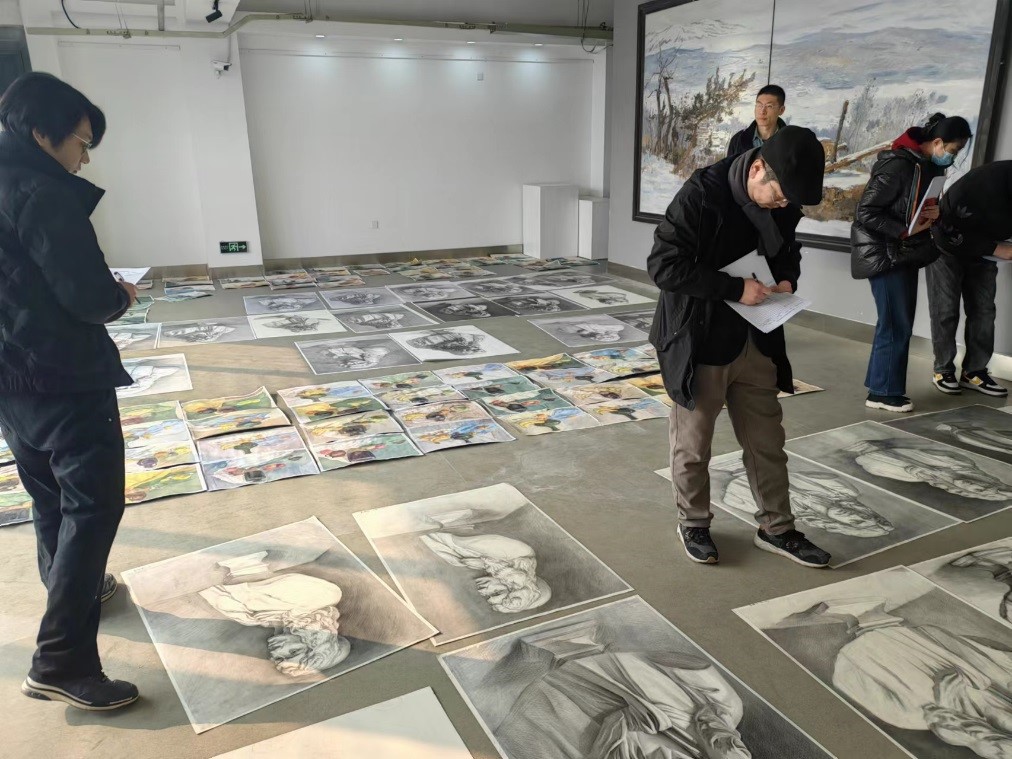 为了检验学生的课堂学习成果,不断提高教育质量,保证学分制和人才培养的顺利实施,学院高度重视结课后实施对学生作业进行统一评定和打分的制度要求。2023年2月23日、24日上午,造型艺术学院进行了2022级第一学期专业必修课作业统一评定打分工作,中国书画教研室、油画教研室、壁画教研室的主任及部分专业任课老师参加了此次作业评定打分工作。