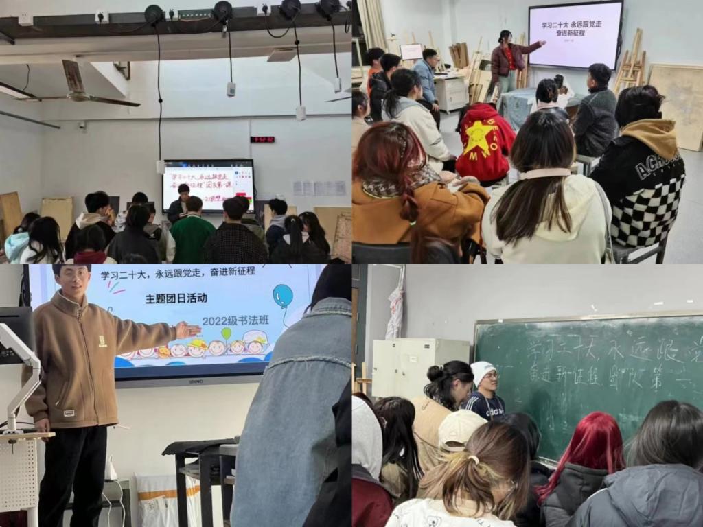 为深入学习贯彻党的二十大精神,把共青团青年的思想和行动统一到党的二十大精神上来,提高学院在校生的思想政治觉悟,造型艺术学院团总支开展“学习二十大、永远跟党走、奋进新征程”主题团课第一课系列活动。通过在各团支部开展主题团日、学习研讨会、主题团课宣讲、系列宣传活动等各项形式,将党的二十大精神传达到全体青年心中,本次活动达到学院27个团支部、347名团员全覆盖。