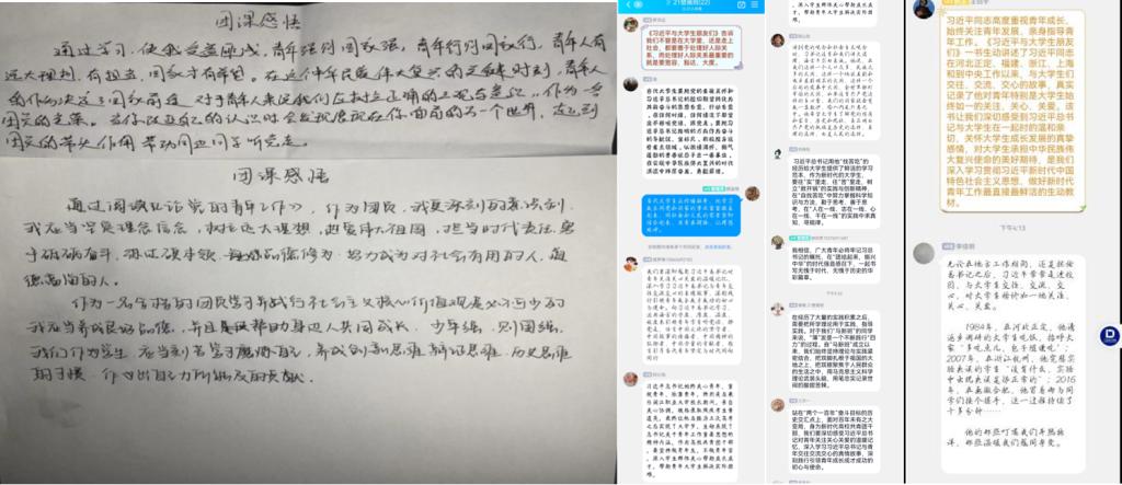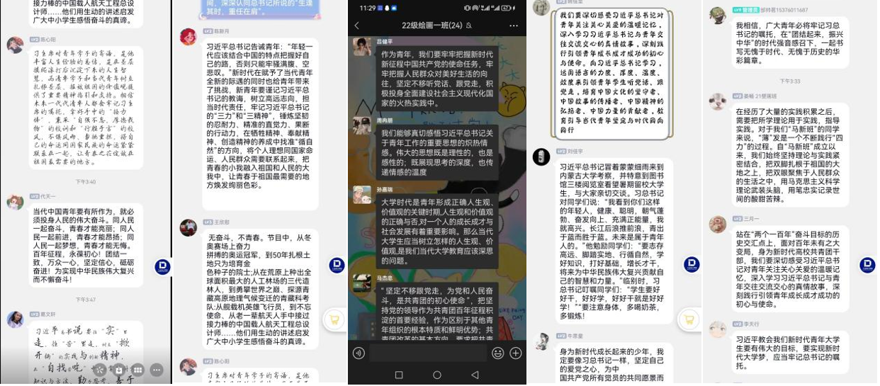 为深入了解学习党的二十大精神,更好地指导新时代青年的学习生活,学院各团支部开展学习研讨会,由团支部书记组织同学分小组围坐,共同品读学习习近平总书记的《论党的青年工作》、《习近平与大学生朋友们》(第一、二卷)、《新时代的中国青年》(白皮书)等系列著作。同学们在学习后受益匪浅并有感而发,纷纷书写心中感悟,并以线上的形式交流讨论所学所思,一致表示要谨记习近平总书记的教诲,树立高远志向,担当时代责任,成为新时代的领头人、倡导者。