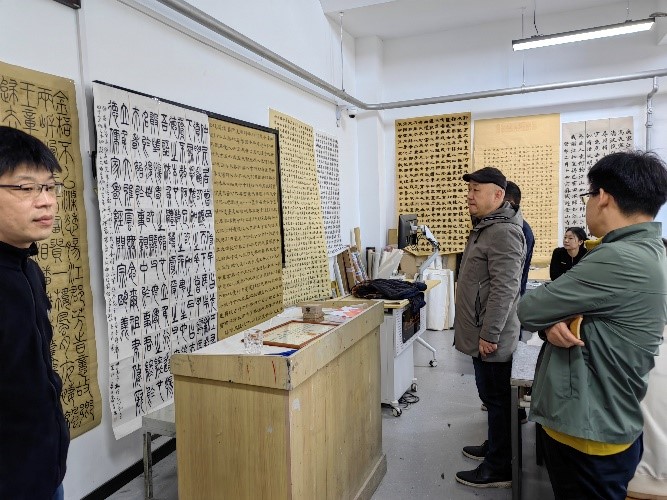 2023年3月6日,为了解毕业创作工作的进展情况,保障毕业创作的顺利进行,造型艺术学院院长刘宁、党总支书记李希进及各教研室主任、毕业班指导老师来到2023届毕业班检查指导毕业创作完成情况。
