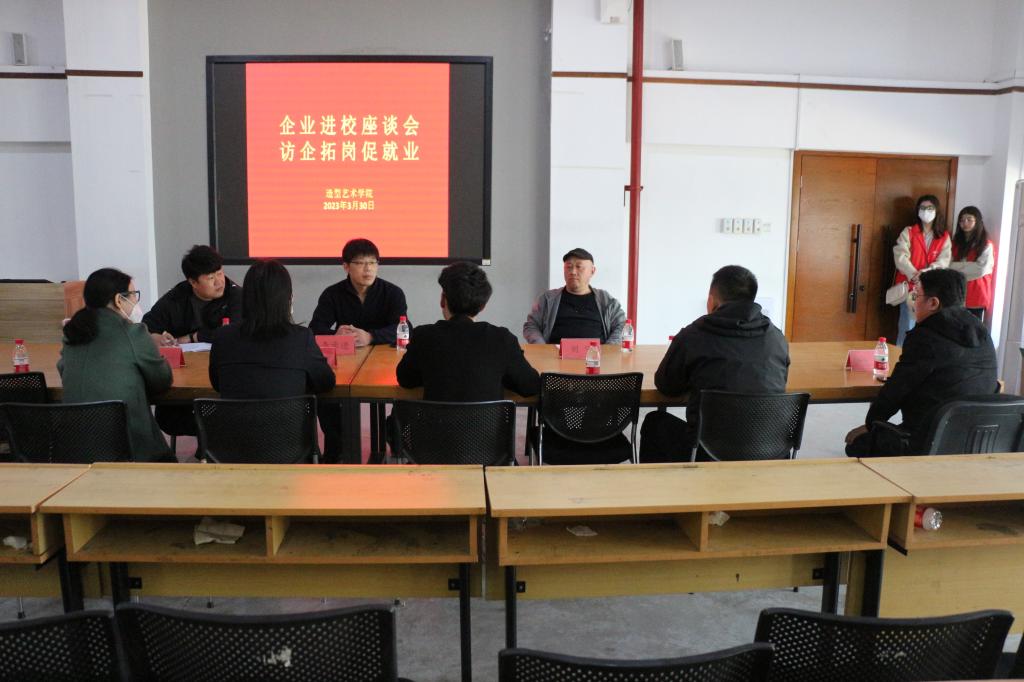 造型艺术学院党总支书记李希进主持会议,对参加活动的企业单位表示感谢。造型艺术学院院长刘宁介绍了造型艺术学院的发展历程、学科设置情况、人才培养情况,并与企业进行对接交流。毕业生辅导员谢军介绍了学院2023届各专业毕业生人数及就业情况。5家企业单位也分别介绍了企业基本情况、岗位职责、工资福利,就学院下一步人才培养方向和人才需求提出各自的建议。