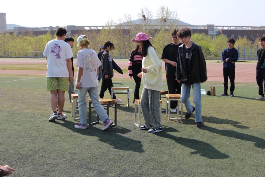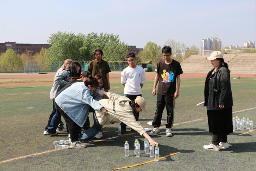 活动中,全体参与的学生共分成八组,由工作人员向参与成员介绍比赛活动及游戏规则,随后各组确定小组名称,制定口号并进行团队展示。随后,“三人接力赛夹气球”、“同舟共济”、“抢凳子”、“蒙眼打人”、“沙包追逐战”、“群龙取水”、“五人四足”、“你画我猜”、“传面粉”、“拔河”、“五毛一块”等各分项活动在一声声热烈的加油口号中拉开帷幕。各项活动既考验个人应变能力、又考验团队相互协作。各小组在赛前对要进行的项目进行练习,练习过程中队员们齐心协力、相互配合,在比赛前调整至自己的最佳状态。比赛过程中,学生们都积极参与、行动默契,充分发扬互帮互助、注重配合的团队精神。通过本次活动,同学们在收获欢乐的同时,也更加意识到集体意识和团队精神的重要性,提升了克服困难的勇气和决心。相信在以后的日子里,大家一定会更加以积极饱满、昂扬向上的状态投入到学习工作生活中来。
