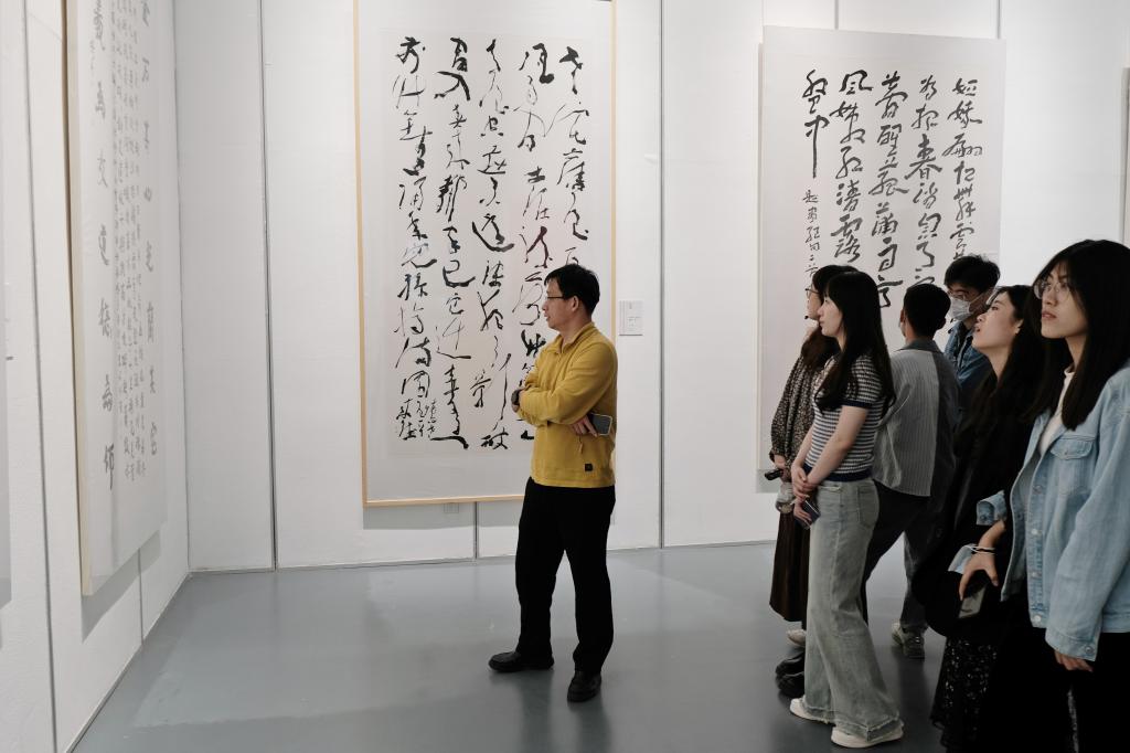 杨国栋老师带领同学们欣赏了展出的书法篆刻作品,并讲解了每件作品的形式内容、风格流派和章法布局。同学们通过参观和讨论,学习了在艺术创作中如何用更加丰富的形式进行艺术表达。通过本次展览,同学们打开了思路,为今后的书法篆刻创作带来启发,促进个人创作的艺术表达。