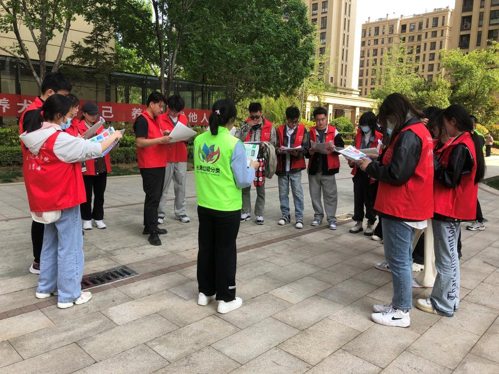为深入开展学习贯彻习近平新时代中国特色社会主义思想主题教育,推进“大学生社区实践计划”,5月10日,造型艺术学院团总支积极对接济水别苑社区,学院功能性团支部组织以学生党员、入党积极分子、优秀团员为主体的30余名学生,开展“垃圾分类 我们在行动”志愿服务活动。本次活动旨在宣扬绿色发展、移风易俗,提升生活垃圾分类的知晓率、参与率,促使社区居民从自身做起、养成垃圾分类良好习惯,宣传垃圾分类相关知识。
