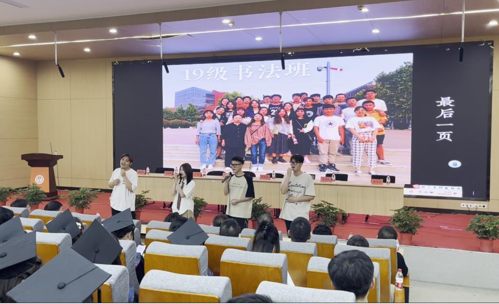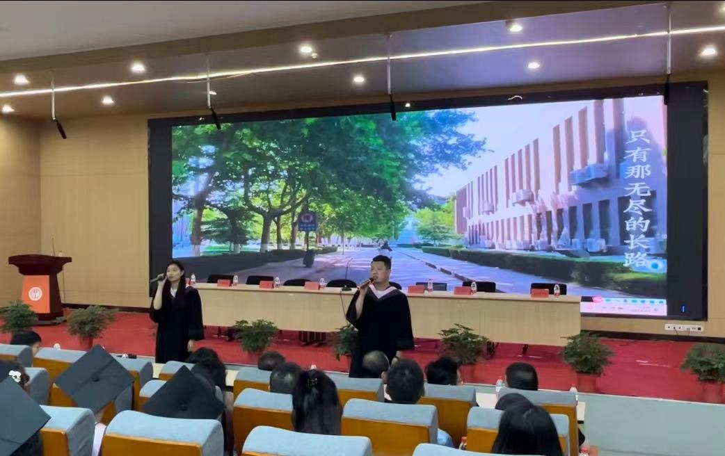 会议开始之前,在校学生代表赵云醒、程鹏、郝彬彬、吕健平带来歌曲《不说再见》,毕业生代表王一、张纯合唱歌曲《再回首》,为全体2023届毕业生们带来美好的祝愿,同时也拉开了大会的序幕。