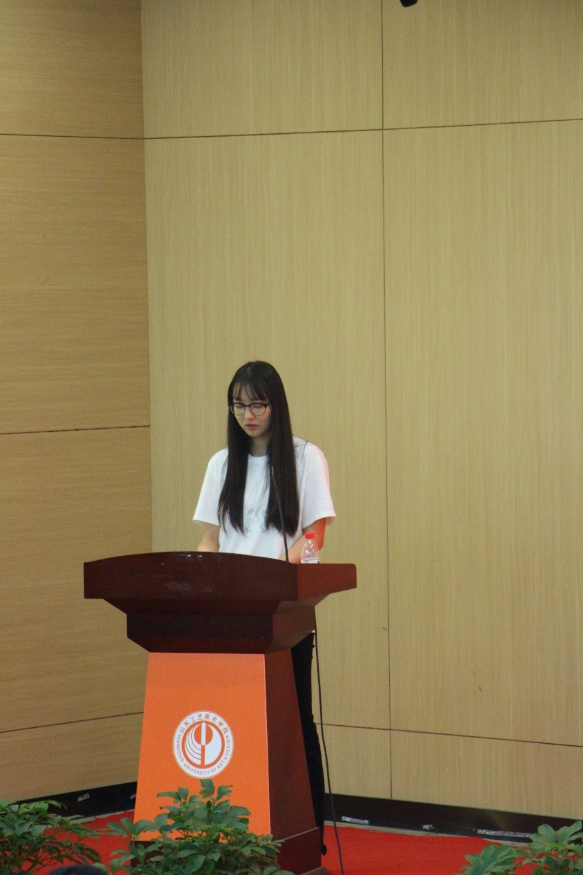 肖子涵作为2023届毕业生学生代表发言。她代表全体20232届毕业生向学院表达崇高的敬意,向各指导老师、专业老师表示由衷的感谢,她倡议同学们应时刻牢记“天工开物,匠心独运”的校训,不畏艰难,勇于拼搏,为祖国的繁荣富强增添自己的力量,“长风破浪会有时,直挂云帆济沧海”。