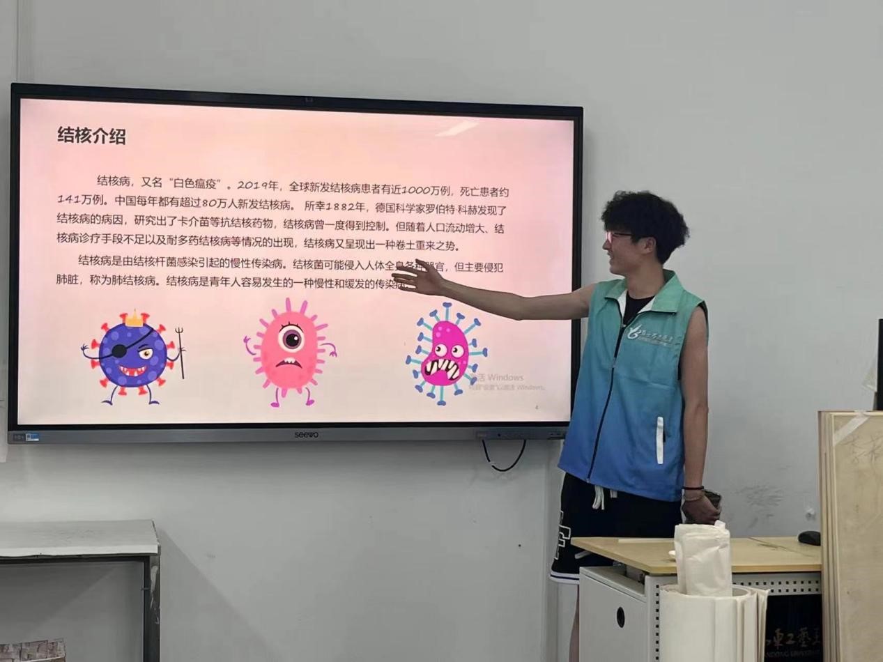 为深入贯彻学习习近平总书记在全国卫生与健康大会上的讲话精神,切实有效开展好暑期“三下乡”社会实践活动,7月初开始,在造型艺术学院团总支书记许威治的指导下,学院“‘微光成炬’防核社会实践志愿队”一行10人,以“防治结核,志愿有我”为主题,在济南市开展实地宣讲和线上调研。该团队旨在探究大众对结核病传播知识的了解程度,深入学习防核知识并开展防核志愿宣讲活动,助推防核科普工作,力争为防治结核病汇聚光亮。