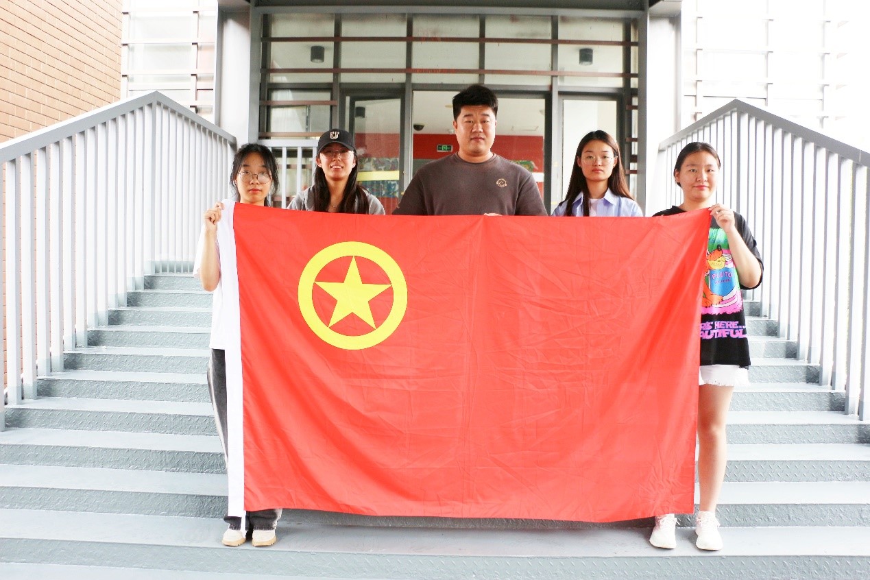 (“艺堂”希望小队全体成员与普集街道团工委工作人员合影)