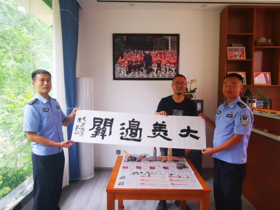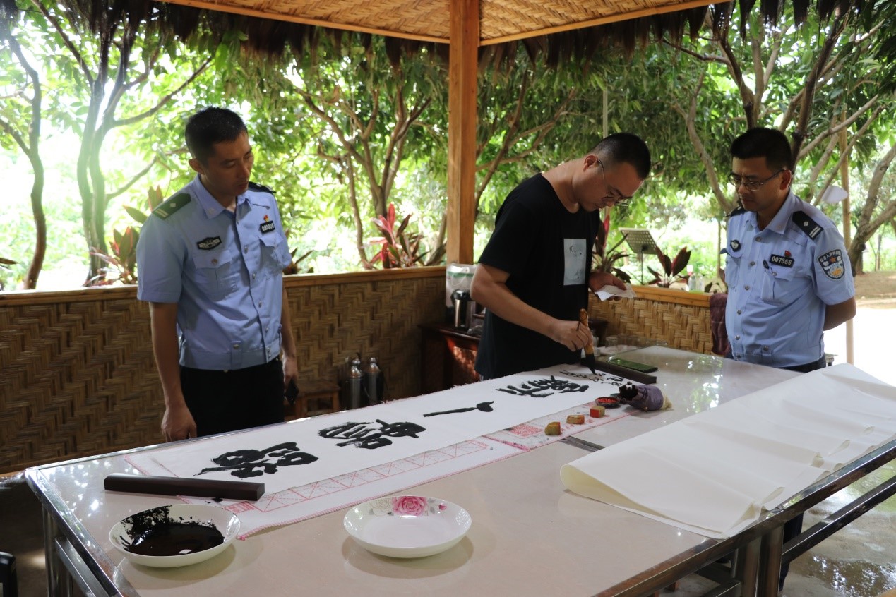 7月27日,秦镜教授与陈凯副教授一同前往红旗桥边境检查站,进行了参观惠通桥旧址和文艺交流主题笔会等活动。了解了惠通桥的历史以及在抗战时发挥的巨大作用,在主题笔会上,陈凯老师将连日来所见与灵感化作笔墨,书写和创作出一幅幅反映保山风土人情、山水风光、讴歌乡村振兴与警民一心的佳作,展现保山的自然之美、人文之美。开展文化交流有助于加强和保持单位间的联系以及同人民群众的血肉联系,“为公安队伍的同志创作文艺作品,可以丰富公安队伍的文化生活,倡导美德健康的生活方式,以期达到凝聚警心、激励斗志的目的。”陈凯表示。