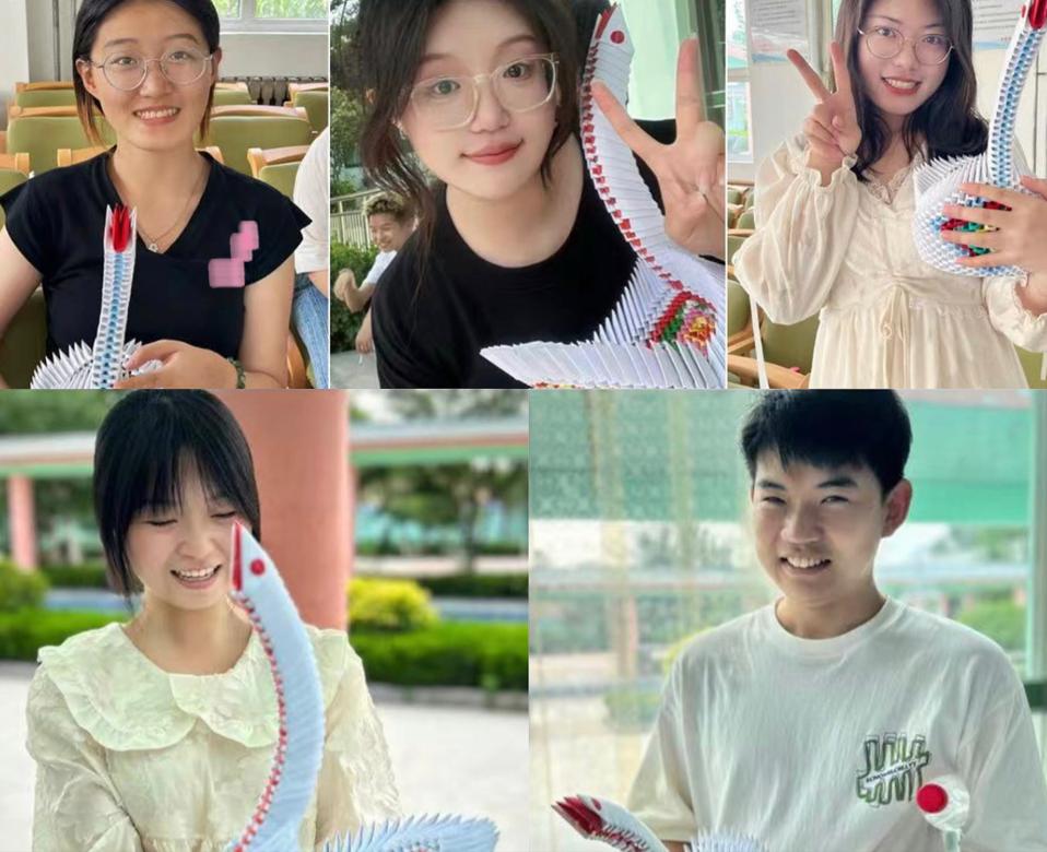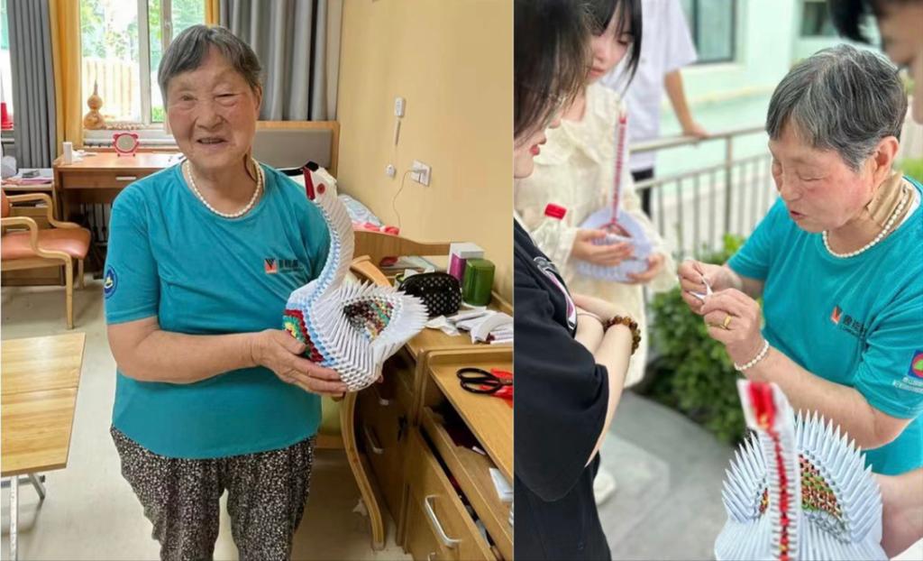 (实践团成员与老人赠予的“传统手工纸鹅”)