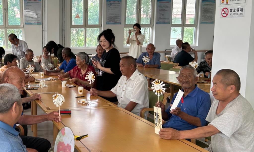 为弘扬中华民族敬老爱老的传统美德,积极营造全社会关注老年人的良好氛围,暑假期间,造型艺术学院2022级绘画一班启航社会实践服务队全体成员走进济南市济阳区孙耿敬老院,以“传承红色基因,尊老敬老献爱心”为主题,结合所学专业特长,开展公益展演、走访调研以及传统手工艺术制作等活动。