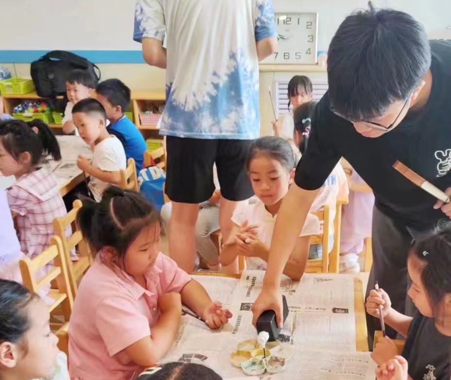 为响应校团委开展社会实践,弘扬中华优秀传统文化以助力乡村振兴的号召。造型艺术学院“艺铸童心翰墨书法小分队”于7月6日,在朱员老师的指导下,一行8人以“文化探寻树自信,争做时代传唱人”为主题,来到山东女子学院附属幼儿园开展美育课堂。