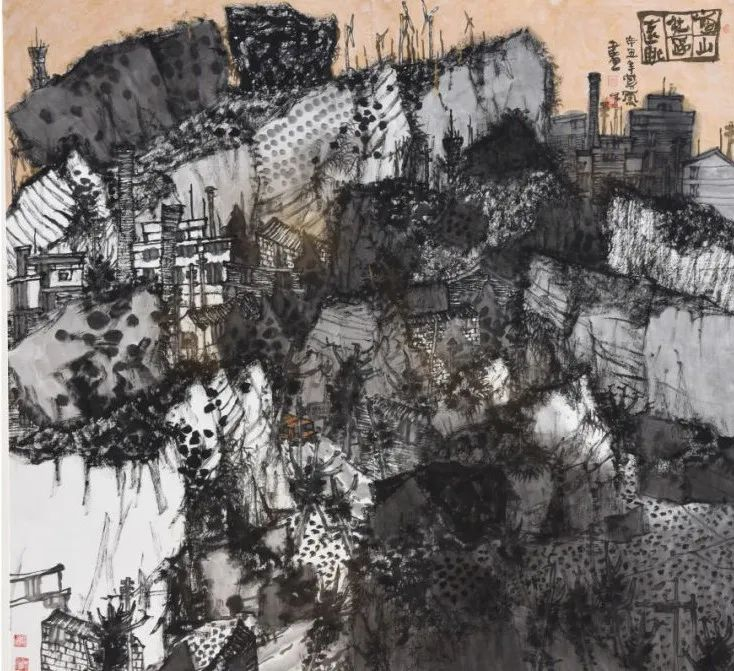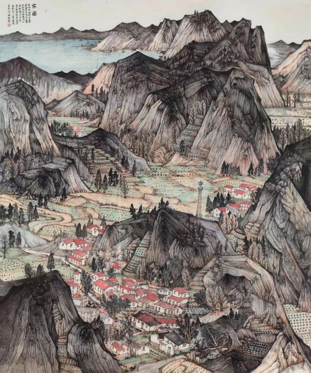 谢其云 《崮山社区远眺》 中国画180×180厘米 2020年