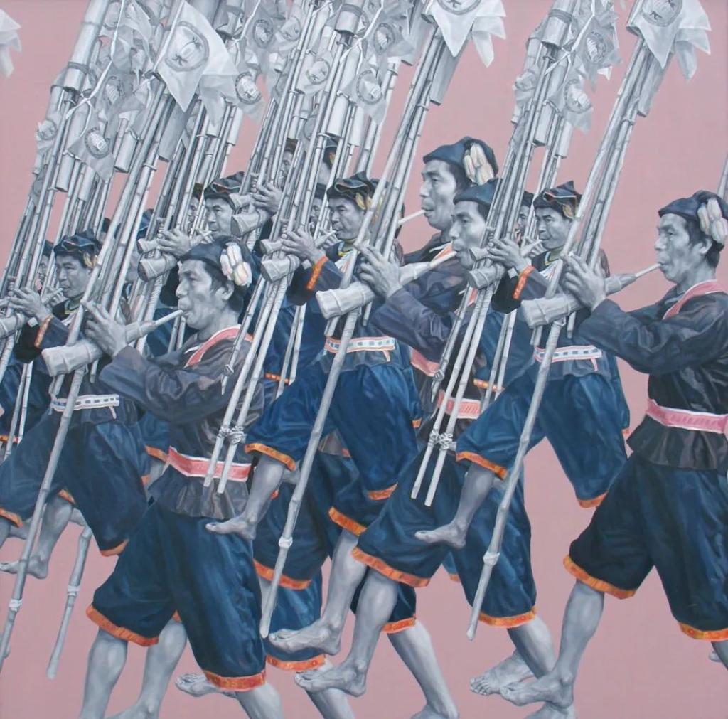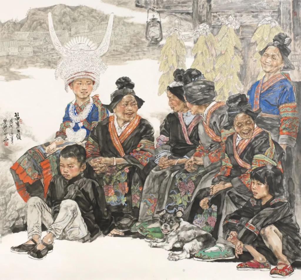 张能锐 《苗寨芦笙》 中国画180×97厘米 2012年