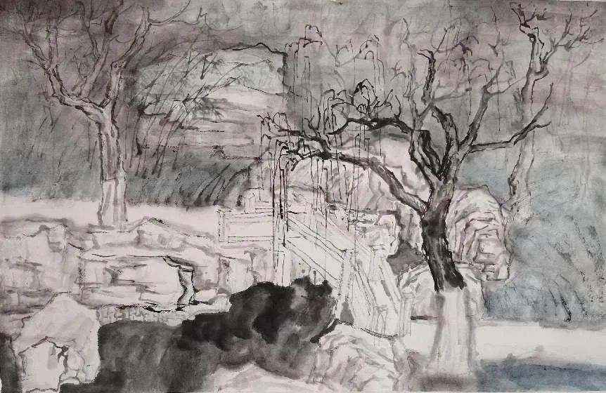 胡雪涛 《鲁迅故居太湖石》 油画120×160厘米 2016年