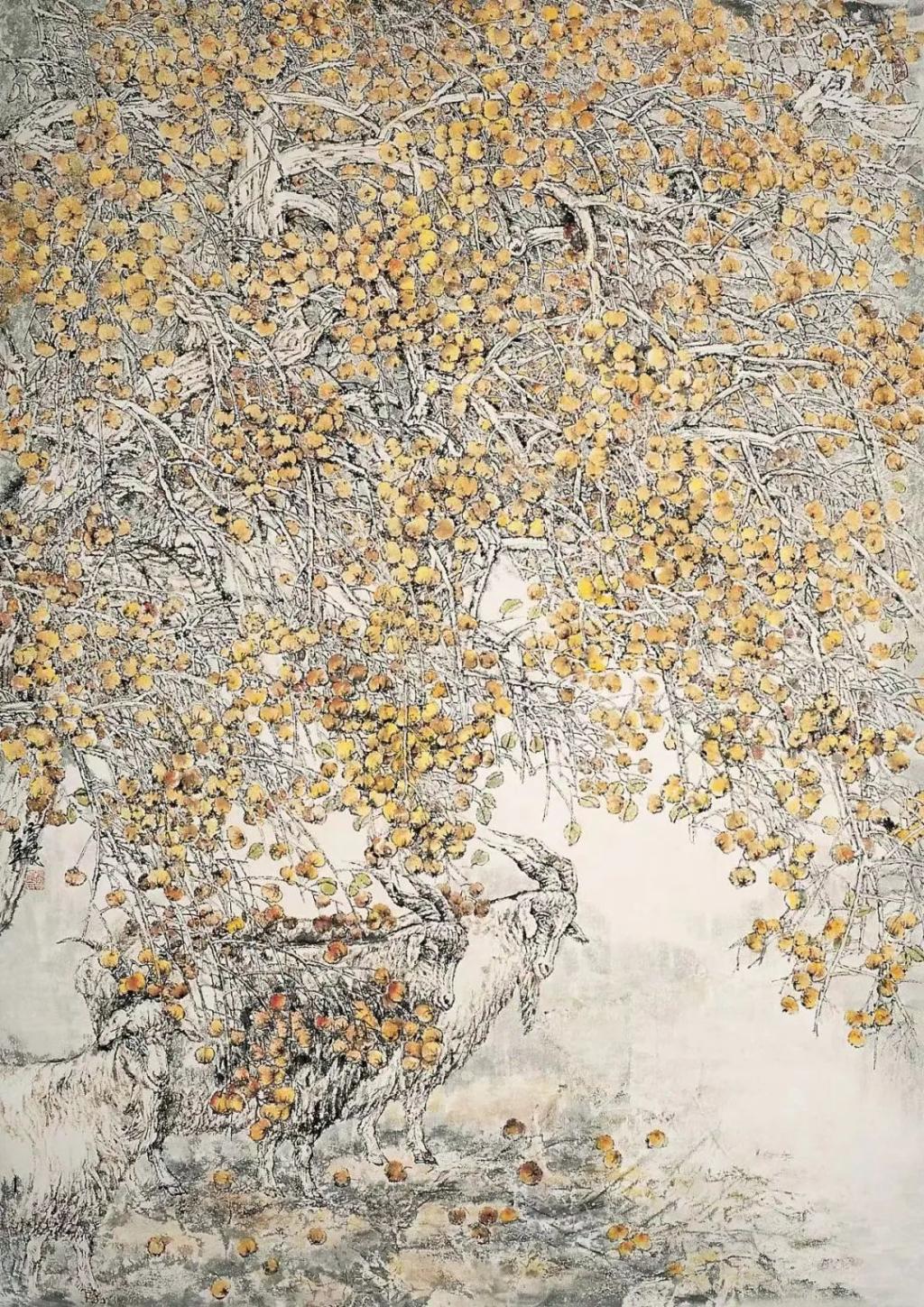 雷家民 《金果飘香》 中国画186×166厘米 2003年