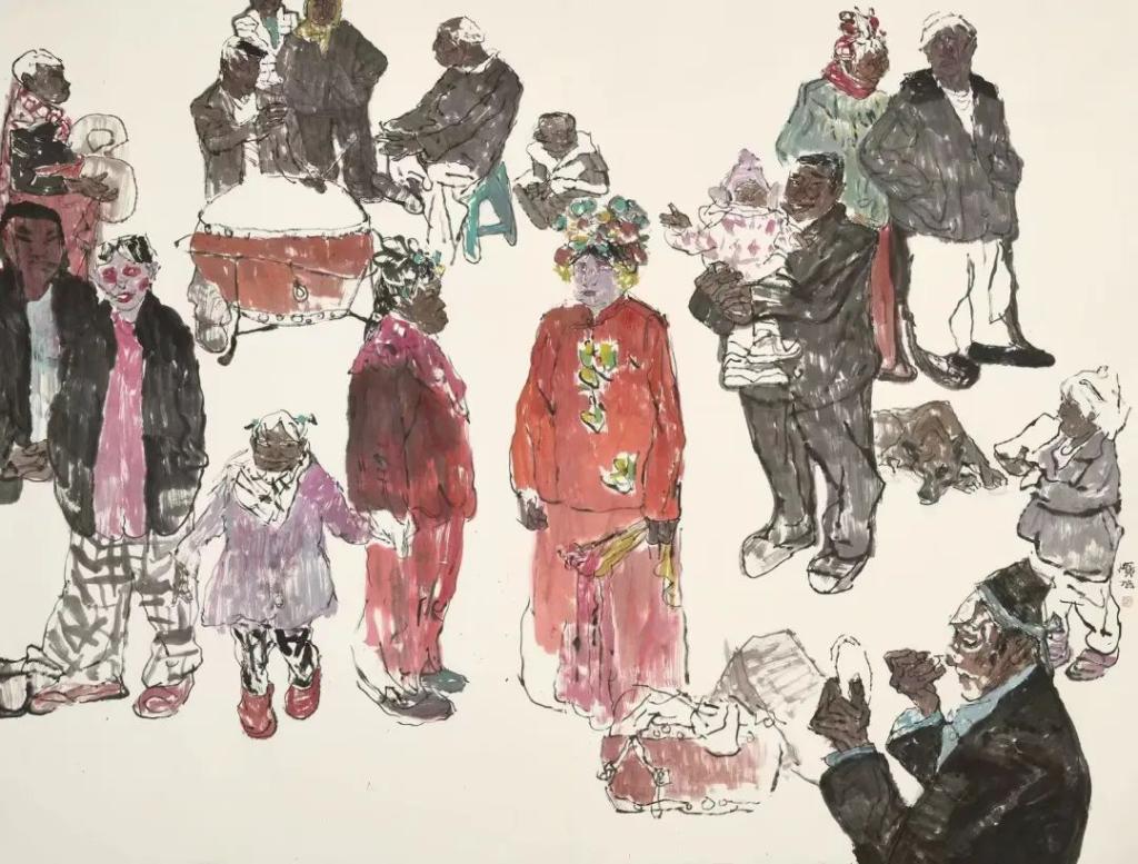 史广信 《乡戏·乡情》 中国画192×235厘米 2021年