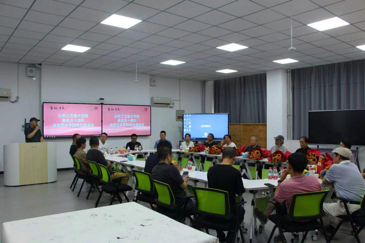 参观结束后,学院在二楼多媒体举行师生座谈会,应邀参加展览的老教授和学院师生共聚一堂,追忆过往,共话未来。座谈会由党总支书记李希进主持。院长刘宁首先向参加座谈会的老教授介绍了学院在学科建设、人才培养、教学改革和科学研究等方面所取得的成果,并将此次展览的筹备和组织情况做了详细介绍。刘宁表示,通过几代师生的艺术创作展现建校50周年的办学成果,是校史和学院历史的另一种书写方式。借助图像,见证学院从“美术系”到“造型艺术学院”的发展过程,体味每个阶段的艰辛和不易。现如今,造型艺术学院已有最初的几人发展到现有教职工五十余人,现任教师汇聚各界精英,教授8人,副教授14人(博士28人),在这个优秀团队的共同努力下,星火相传、青蓝相继,学院的教育教学质量稳步提升,源源不断的向社会输送优异人才。参加座谈会的老教授代表回忆了学校的发展历史和他们执教期间与学院的故事,为学院目前所取得的成绩倍感骄傲和自豪,纷纷表示将继续为学院的发展添砖加瓦,贡献力量。