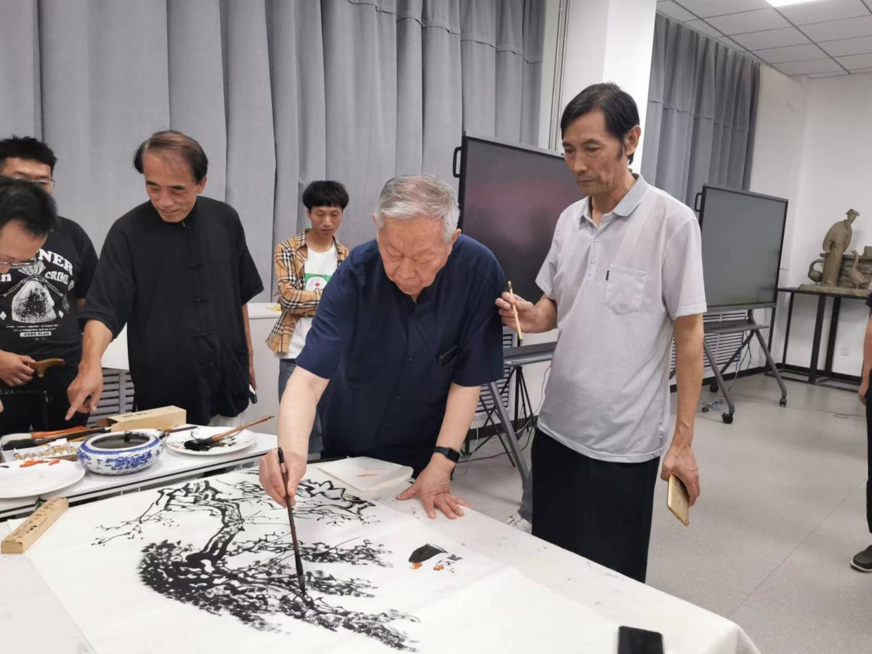 座谈会后,应邀参加座谈的老先生们共同执笔为学院创作作品一副。