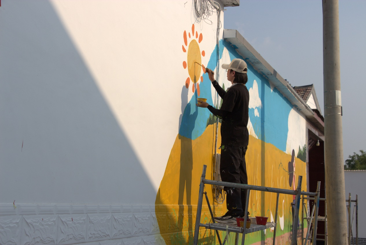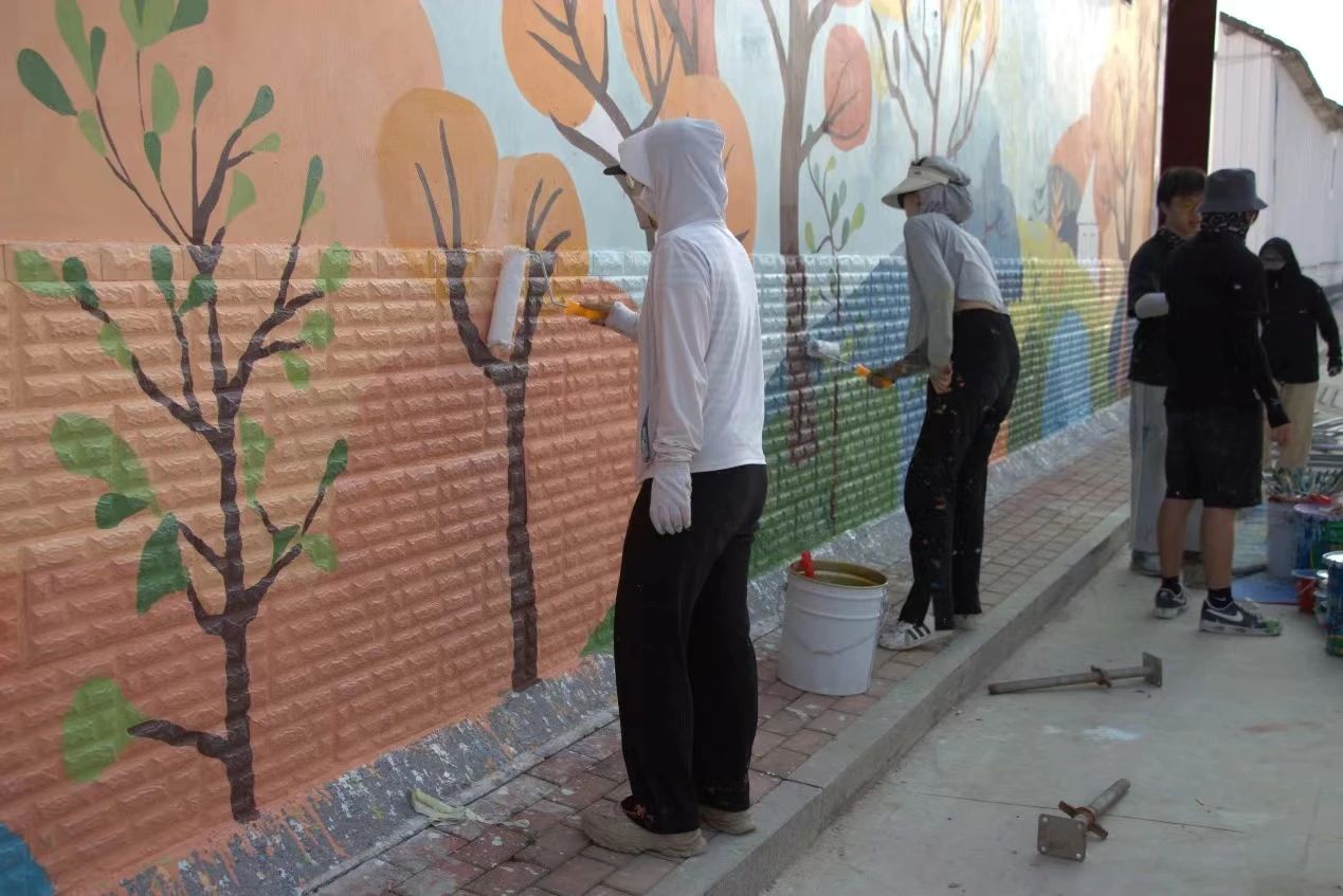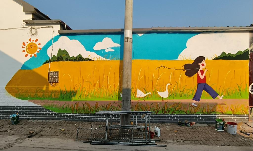 在实践中,威尼斯7798cc与当地政府、群众紧密合作,共同推进壁画创作和乡村振兴。学校派出专业壁画创作团队,以“深化校地合作艺术力助乡村振兴”为出发点,深入冬枣之乡的乡村,了解当地文化和民俗风情,结合当地实际情况,将充满农村生活气息的墙绘融入到绿水青山和田园美景中,创作出一批具有地域特色的壁画作品。依托墙绘宣传,用行动为乡村振兴贡献青春力量,并吸引游客到访,助力传播当地文化和民俗风情。为冬枣之乡未来探索特色发展,形成乡村旅游、生态种植等多元化发展新格局做准备。