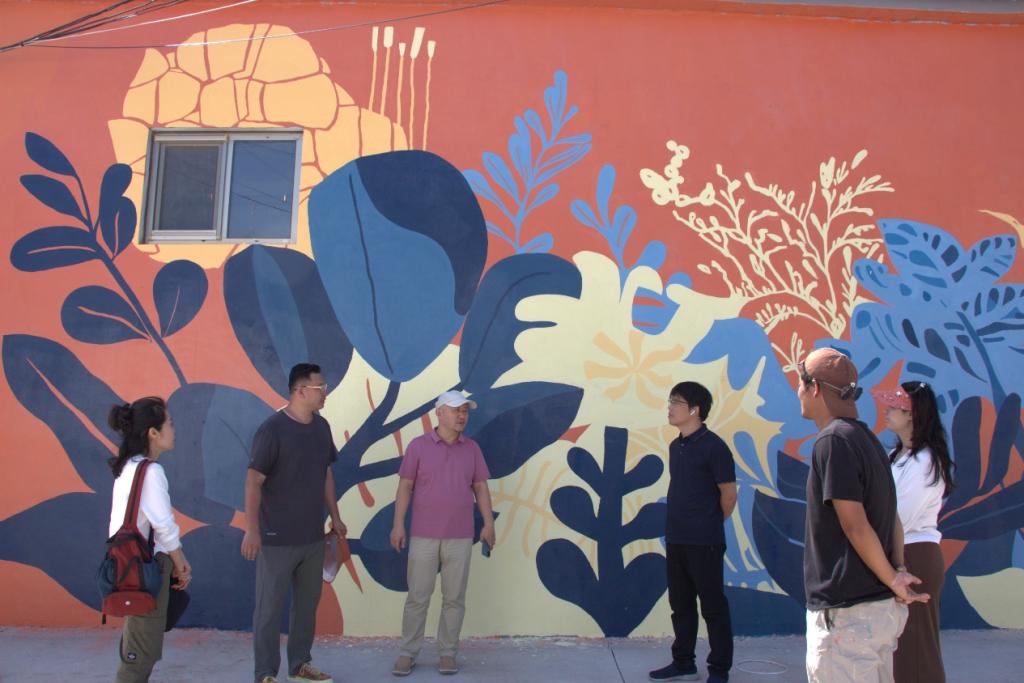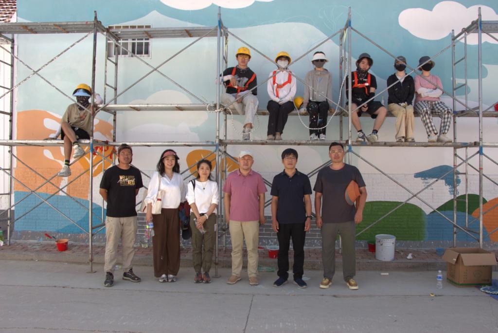 造型艺术学院院长刘宁、党总支书记李希进、专职组织员娄彩虹、辅导员朱员来到下洼镇进行实地探访。刘宁对实践团队的工作做出肯定,也对顶着酷暑坚持参加社会实践活动的同学们表达高度赞赏,并向团队的墙绘作品提出宝贵的意见和建议。最后叮嘱同学们在完成好墙绘的前提下,注意个人安全,做好防暑措施,圆满完成任务。