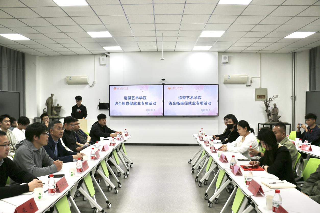 为了落实校企合作求发展,深入洞察企业的人才诉求,促进供需精准对接,助推2024 届毕业生就业工作。造型艺术学院于4 月 10 日在综合办公楼二楼多媒体举行春季“访企拓岗促就业”专项行动。造型艺术学院邀请党委副书记韩世春出席本次活动,本次活动由造型艺术学院党总支书记李希进主持,造型艺术学院各教研室主任、毕业班专业教师、辅导员以及2024 届毕业生参加。