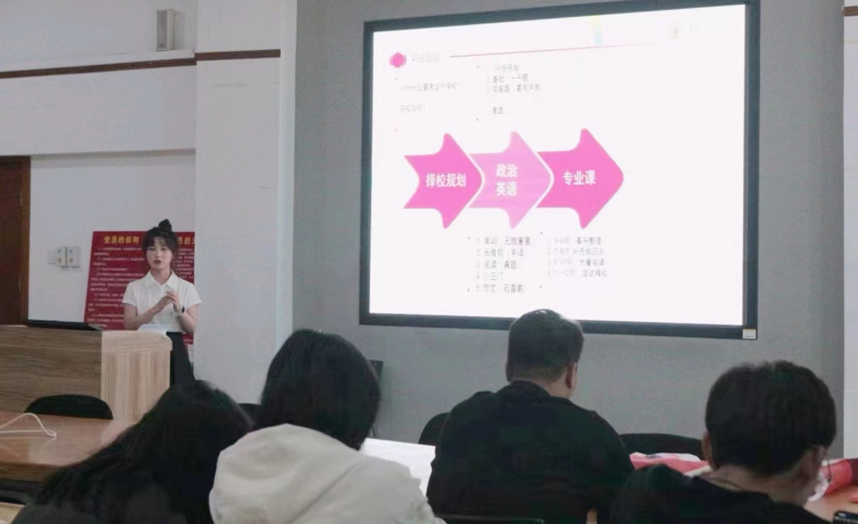 5月13日晚,学院于七合堂开设考研和英语四级考试分享会,邀请济南范泰克教育邓老师主讲。邓老师指出英语学习的重要性,并分享了学习英语的规划、方法等。