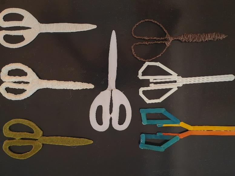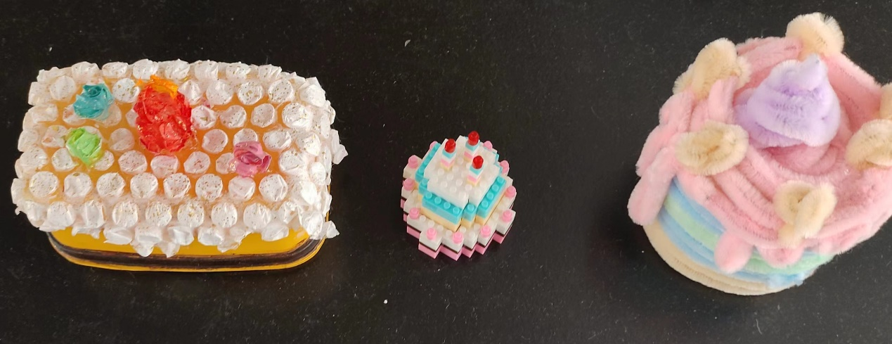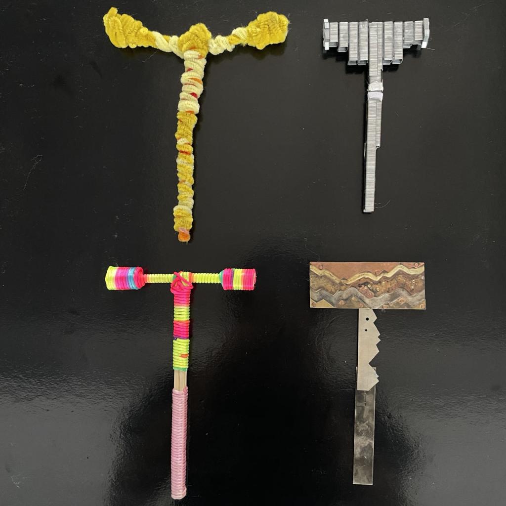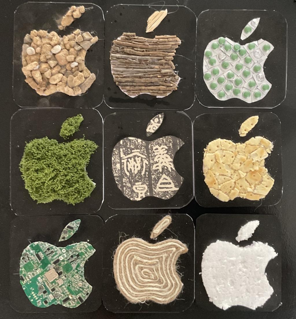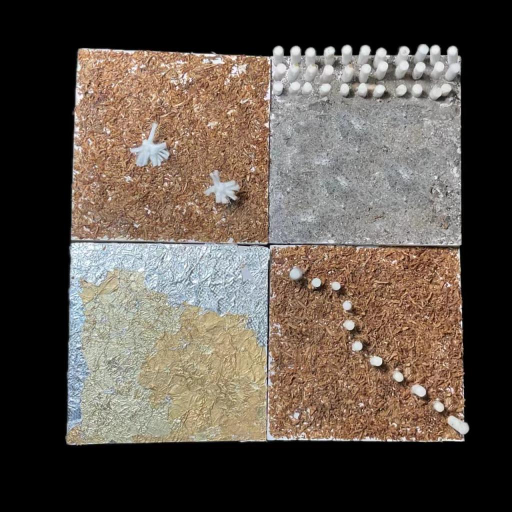 材质:铁丝、亚克力板、纸浆、草皮纸、小木棍、ABS棒、毛线、废纸壳、颜料罐、纸浆、粘土