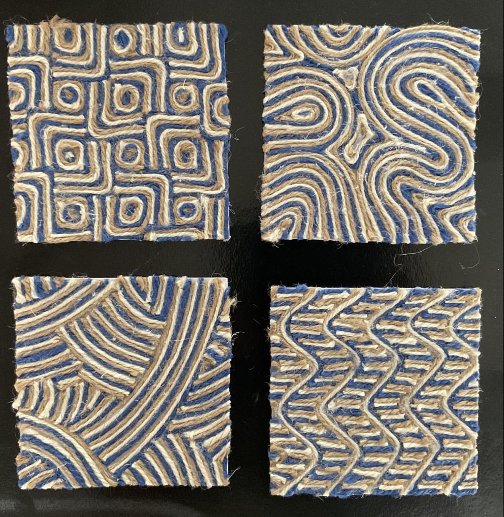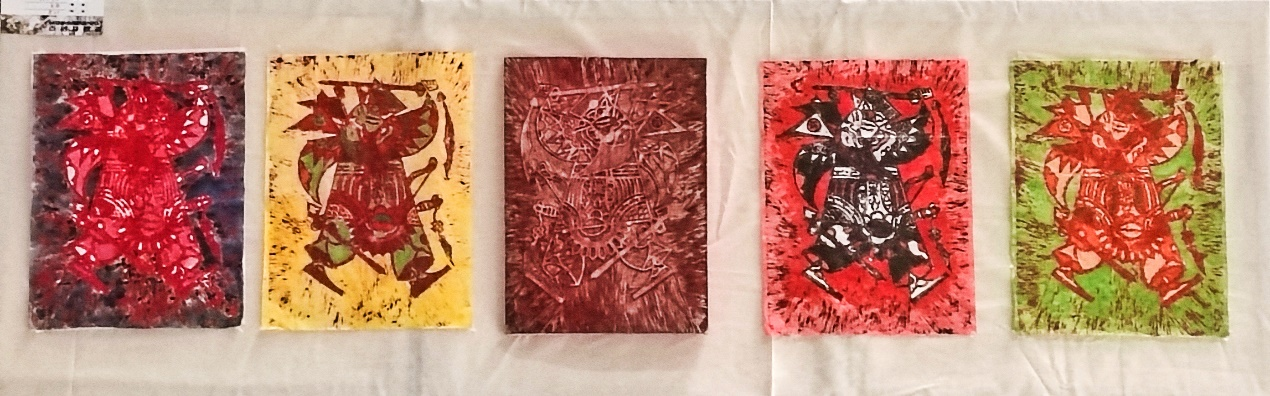 材质:丙烯、宣纸、羽毛球、扭扭棒、宣纸、塑料、毛线、普通钢丝、梨木板、宣纸、版画颜料等