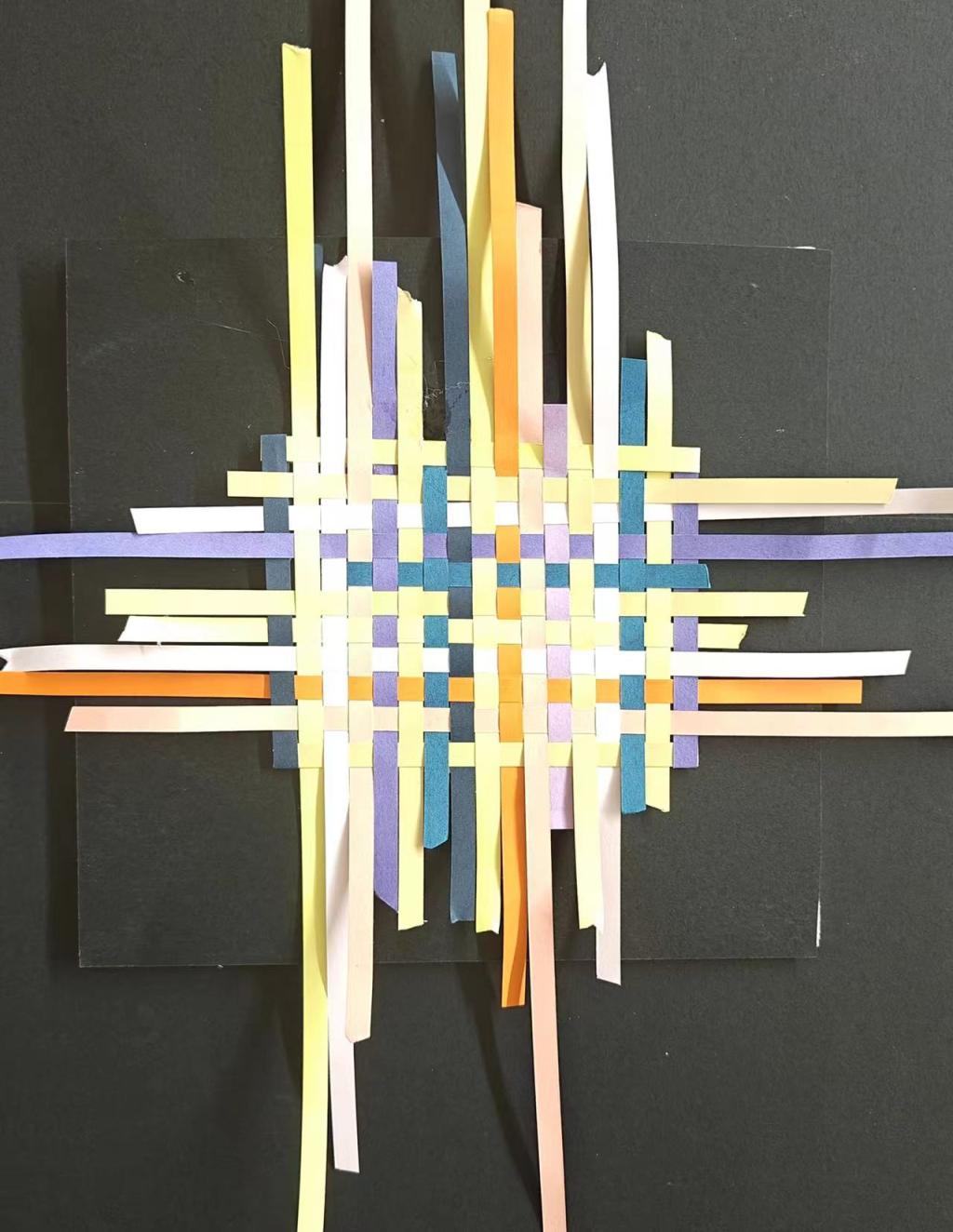 《彩排》是一幅综合材料作品,以低碳环保为主题,运用彩绳已经纸板等环保材料进行创作。作品通过丰富的色彩和独特的造型,展现了自然与人类和谐共生的美好景象。该作品以低碳环保为主题,巧妙地利用了废弃材料,展现了自然与人类和谐共生的美好景象,呼吁人们重视环保,共创美好家园。