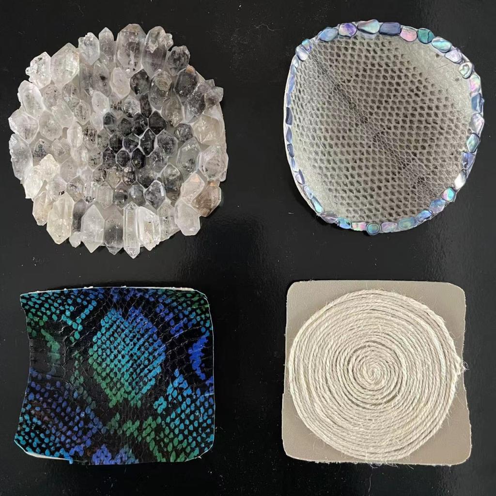 材质:色粉、青金石、白水晶、革闪灵、麻绳蛇皮、卫生巾毛线