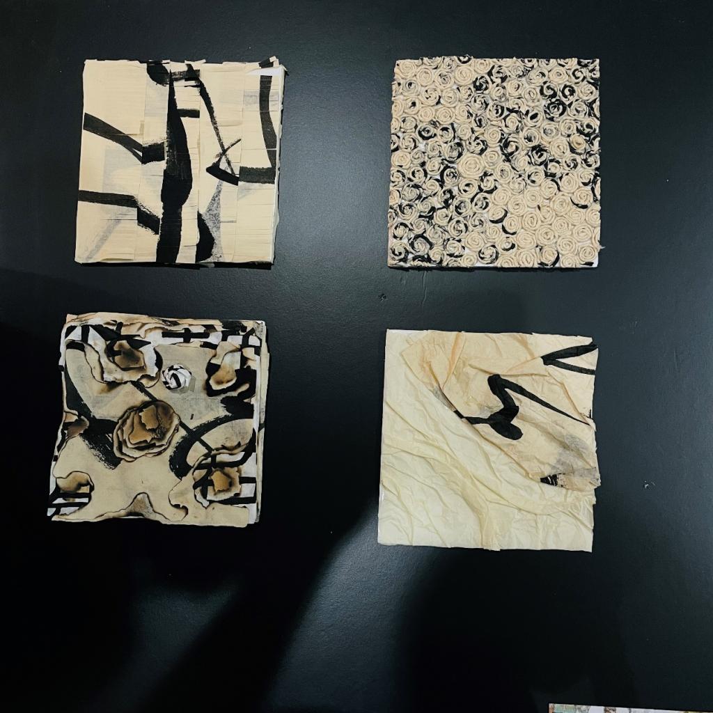 作品《雏菊》用各种纸做的雏菊花,提高了可生态循环。 作品《书法》废弃书法宣纸通常会被扔掉或焚烧,这会浪费资源并产生大量的垃圾。通过将这些废弃宣纸重新利用,制作成艺术品,可以减少浪费,节约资源。书法宣纸通常是由天然纤维制成的,如棉花、竹子等,这些材料相对环保。通过将废弃宣纸重新利用,可以减少对新的原材料的需求,从而减少对环境的影响。