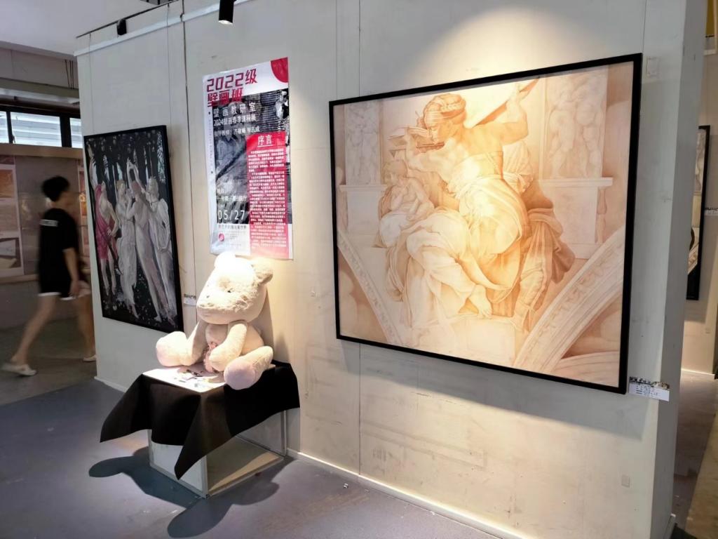 造型艺术学院院长及各教研室主任和老师代表参加展览,现场给予指导与建议。刘宁指出壁画教学应该结合项目和传统民间艺术,进一步挖掘创作的可能性,同时指出艺术赋能环境保护的重要性,并提出一些宝贵意见和要求。
