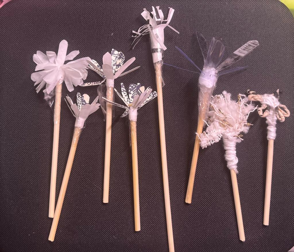 材质:毛线、钉子、棉签、垃圾袋、吸管、扭扭棒、铁丝