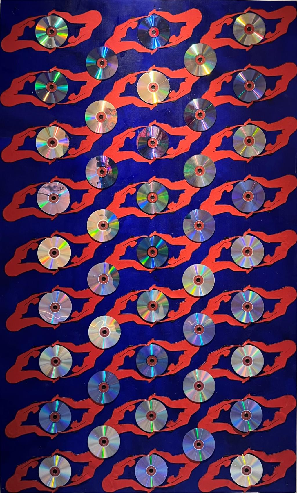 这个快速发展的时代,我们每天都会产生大量的废弃物。这些废弃物如果不得到妥善的处理,不仅会对环境造成污染,还会浪费大量的资源。背景色选用了蓝色,象征着天空和海洋,寓意着我们对蓝色星球的珍爱。而红色的线条则如同血脉一般,在CD光盘之间穿插流动,象征着生命力和活力。这种色彩对比不仅增加了作品的视觉冲击力,也强化了低碳环保的主题。