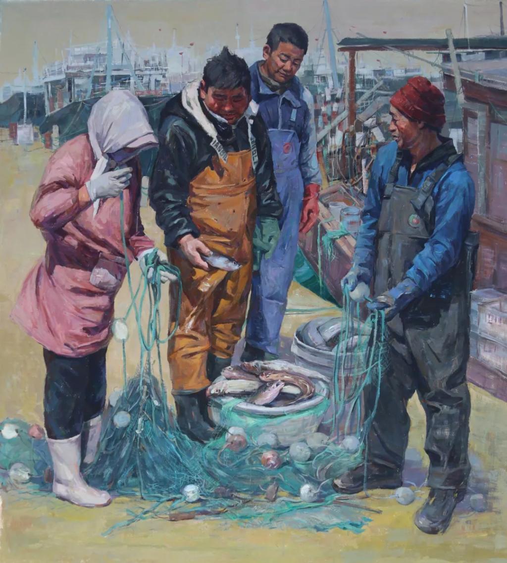 刘宁《开春第一网》水粉