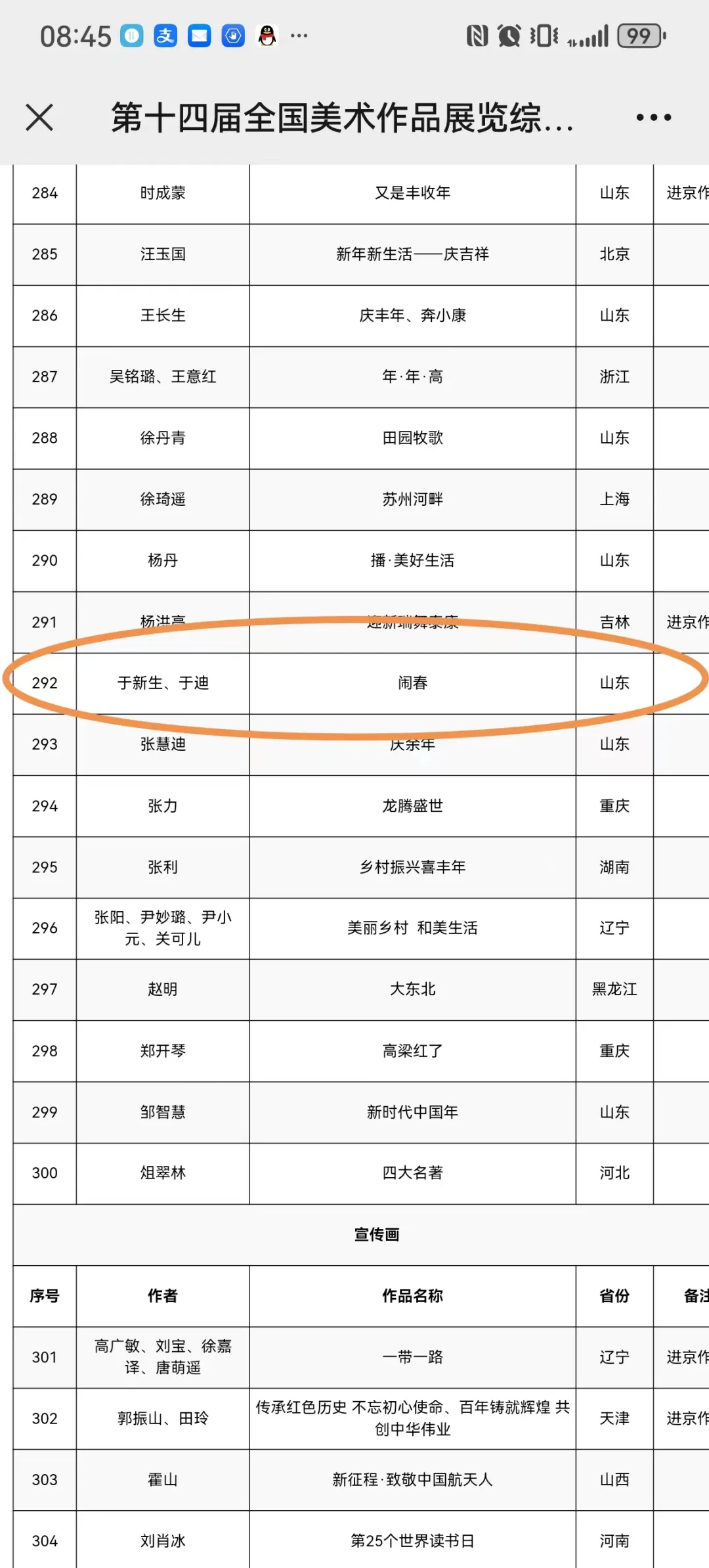 近日,由文化和旅游部、中国文联、中国美协联合主办的第十四届全国美术作品展览各展区作品复评结果陆续揭晓,造型艺术学院呈现出一批精彩纷呈的艺术作品,取得了令人瞩目的成绩。于新生国画作品《阳春三月》,于新生、于笛年画作品《闹春》,刘宁水彩粉画作品《开春第一网》,商长虹雕塑作品《学者》、工艺美术作品《灼灼其华》,丁晓东、丁雷年画《春满人间》,闫育帅综合材料作品《犁·语》总计七件作品入选。