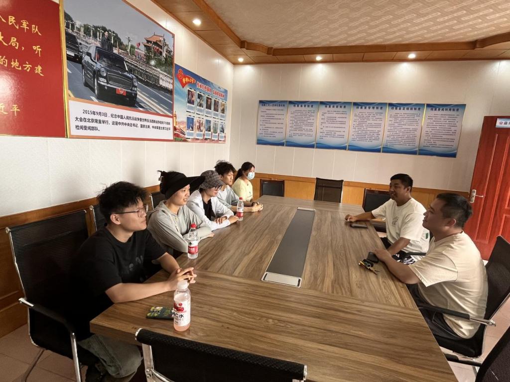 (图为韩家窝村支书韩浩和闫育帅老师正在与同学们亲切交流)