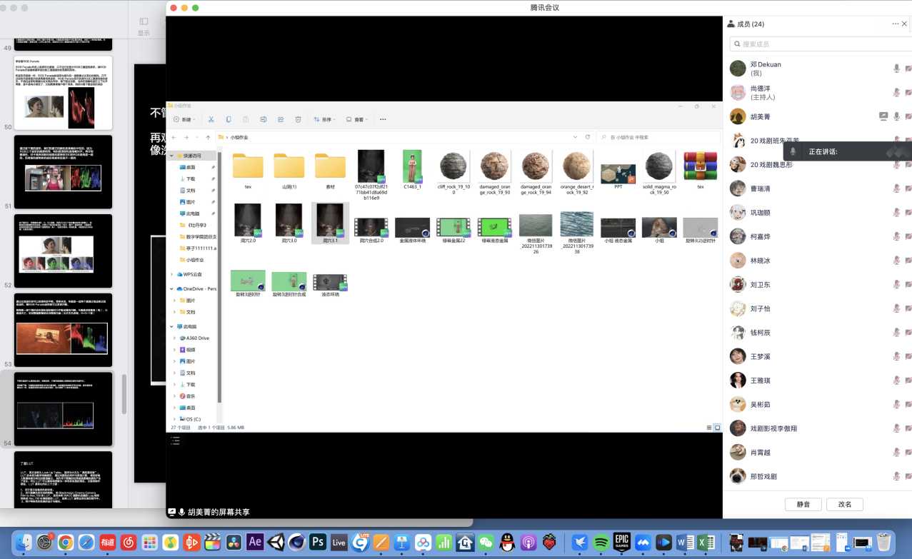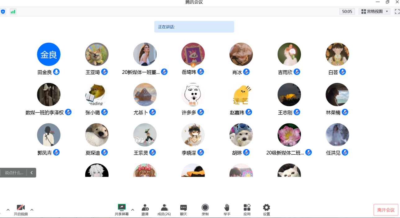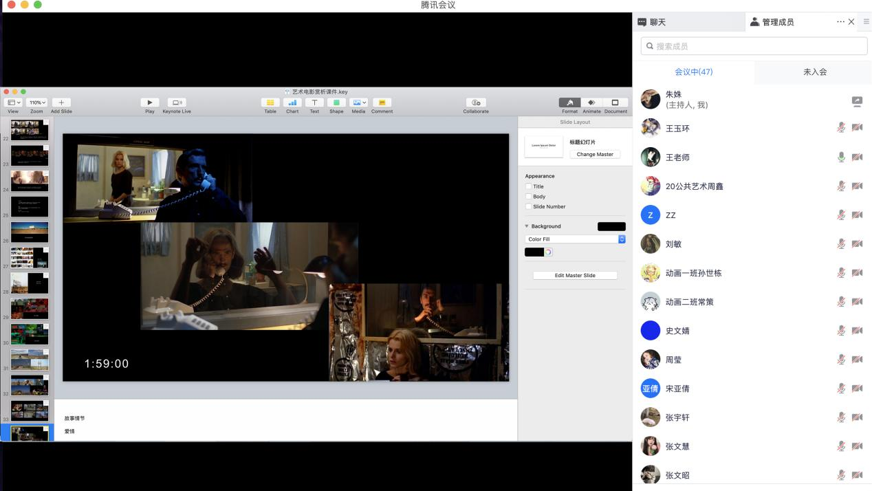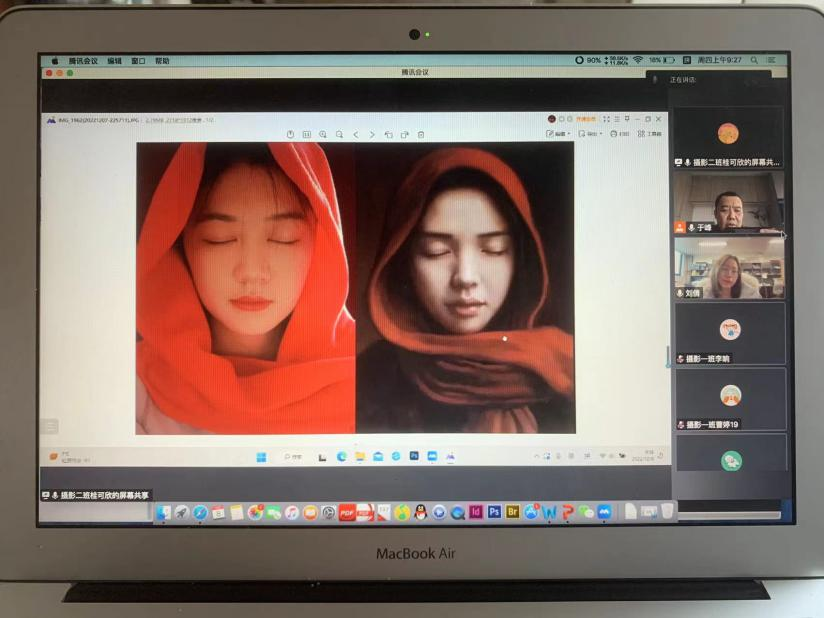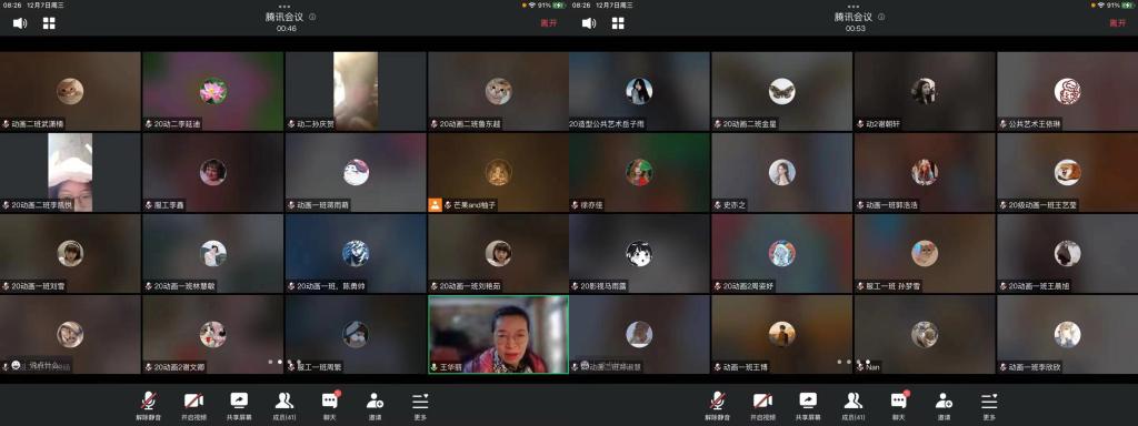 学生和老师先后出现身体不适情况,大家克服困难利用线下观片线上交流的形式,从影片结构、摄影色调、人物情节、场面调度等方面进行探讨。