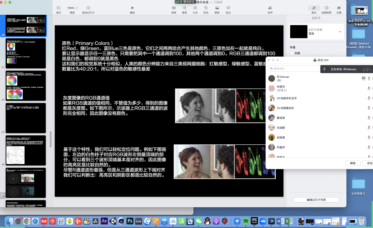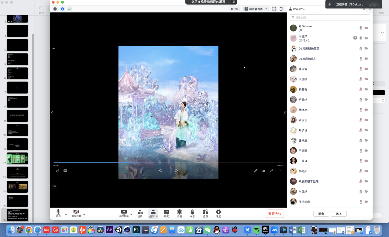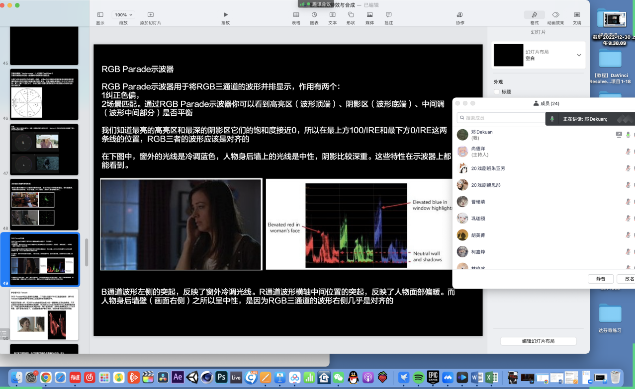 学生和老师先后出现身体不适情况,大家克服困难利用线下观片线上交流的形式,从影片结构、摄影色调、人物情节、场面调度等方面进行探讨。