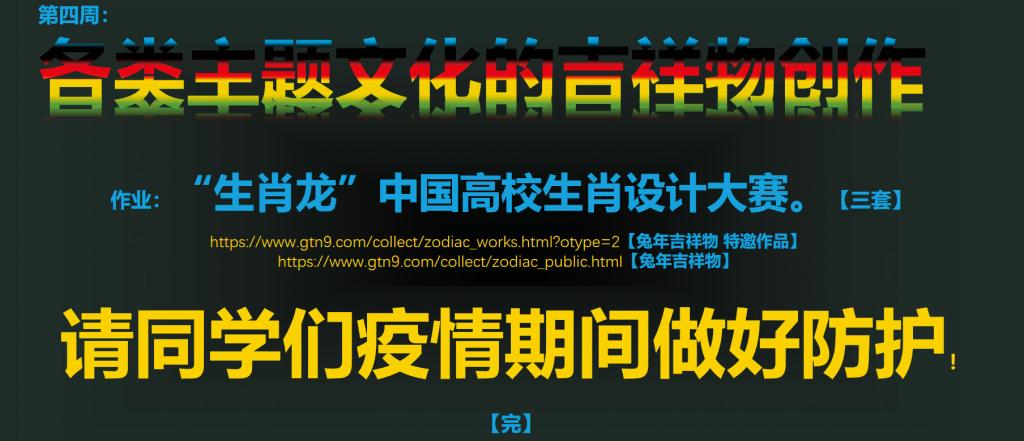 吉祥物形象设计课已经结课,再次感恩每一位同学的线上互动。2022年2月7号到29号,感恩师生间跨越时空的彼此相伴23天。这期间全国解封,新冠病毒影响到大家的身体健康,但是同学们还是忍受着头疼、关节疼、嗓子似小刀拉疼的痛苦带病上课,新冠病毒锻造了同学们的意志和品格!希望你们早点儿好起来,新冠疫情早点儿结束。
