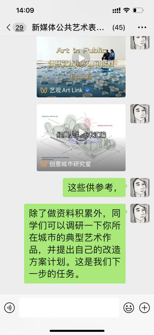 课程作业:调研本地的典型公共艺术作品,写出调研和分析报告,利用课程学习到的创作方法,结合新媒体艺术的表达特色和技术特点,对自己所在城市的公共艺术作品进行现代化改造,写出完整策划设计方案。