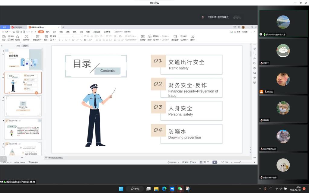 我院本次线上安全教育主题大会,各级辅导员通过系统讲解、案例分析等形式从多个方面对学生进行了全面、系统、深入的安全教育,增强了同学们的安全防范意识,树立了安全第一责任人的思想,提高了同学们的自我保护能力,为同学们度过一个健康而又充实的寒假提供了保障。